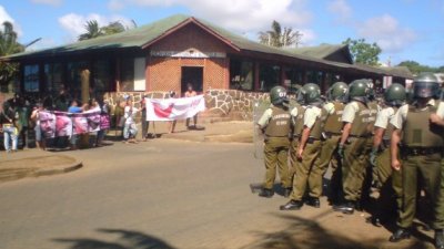 Ayer, fuerzas de Carabineros desalojaron violentamente la Plaza de la Gobernación de Hanga Roa, capital de la provincia de Isla de Pascua, ocupada desde hace varios meses por más de veinte pascuenses que protestaban por la usurpación de tierras ancestrales por parte del Estado chileno. Más de cien policías, bajo las órdenes de desalojo de Raúl Célis, intendente de la Región de Valparaíso, golpearon a los manifestantes, entre los que se encontraban mujeres y niños, dejando a tres heridos de gravedad y once detenidos.