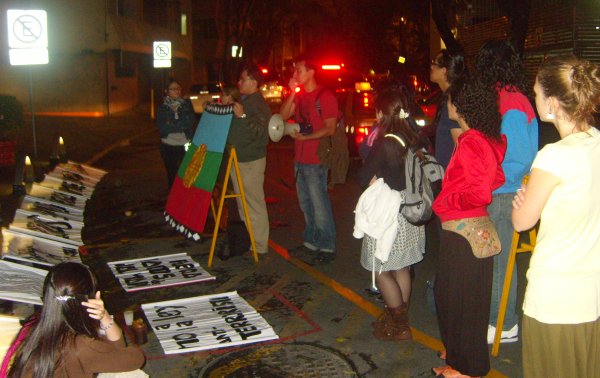 Por cuarta vez el Comité de Apoyo con los Presos Políticos Mapuche-México se manifestó frente a la Embajada chilena en México, en solidaridad a los huelguistas que cumplieron este miércoles 22 de septiembre 72 días en ayuno.