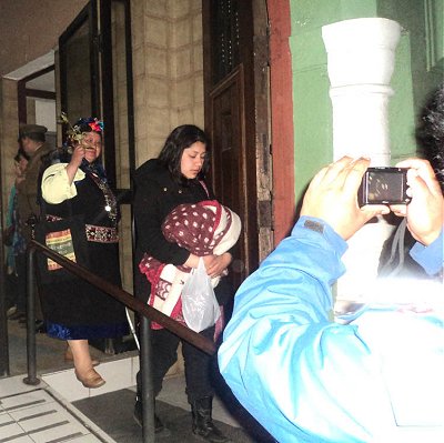MC: El resultado fue duro, porque tuvimos alrededor de 30 personas detenidas y creemos que ello también marca un antes y un después en la historia de mi comunidad, porque una represión de este tipo no se había visto hace mucho tiempo, incluyendo el hecho de infundir temor desde helicópteros policiales aéreos y despliegue de fuerzas especiales por tierra. Entonces la gente pudo ver en forma clara cuál es la brutal respuesta que asume un gobierno, cuando ve que los mapuche se movilizan en forma unitaria y pacífica. Esto por supuesto, es desdibujado por los medios de información, lo que se retrata específicamente en mi detención, en la cual se mostró en la televisión pública sólo las imágenes en la cual intento defenderme y resistir la prepotencia con la cual soy golpeada, agresiones que no aparecieron en ningún medio informativo.