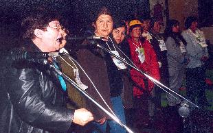 Cerca de las 17:00 hrs. llegó el Presidente de la República, Ricardo Lagos, antecedido por la Sra. Luisa Duran; la Ministra del Servicio Nacional de la Mujer, Adriana Delpiano; Ministro del Trabajo, Ricardo Solari; Ministro Secretario General de Gobierno, Heraldo Muñoz; Directora del Trabajo, María Ester Feres; Superintendenta de Seguridad Social, Ximena Rincón; Director del INDAP, Ricardo Halabí; Diputada, María Antonieta Saa; Diputado, Juan Pablo Letelier; Ex Diputada y Dirigenta de la CUT, María Rozas Velásquez; diversas autoridades de Servicios Públicos, alcaldías y organismos del rubro. El Cabildo Abierto comenzó con la intervención de Alicia Muñoz, quien enfáticamente se dirigió al Presidente Lagos expresándole el pesar que sentían las mujeres, ya que a los empresarios les dedicó cinco horas y a las trabajadoras sólo media. En ese instante las mujeres ovacionaron las palabras de la Presidenta de ANAMURI. Posteriormente tres mujeres representativas de la Asamblea expusieron las propuestas y demandas por eje, María Cartagena de Copiapó, Flor Campos de Lo Herrera y Luz Tapia de Curicó.