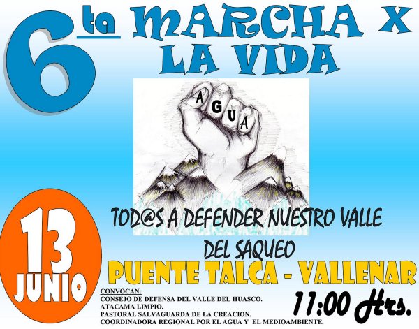Sábado 13 de junio, Sexta Marcha Por la Vida desde las 11,00 horas en el puente Talca, Valle del Huasco, Chile