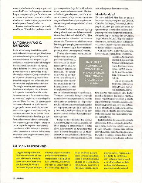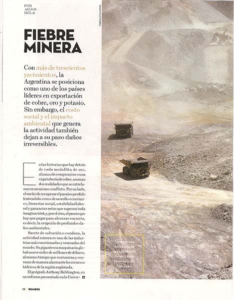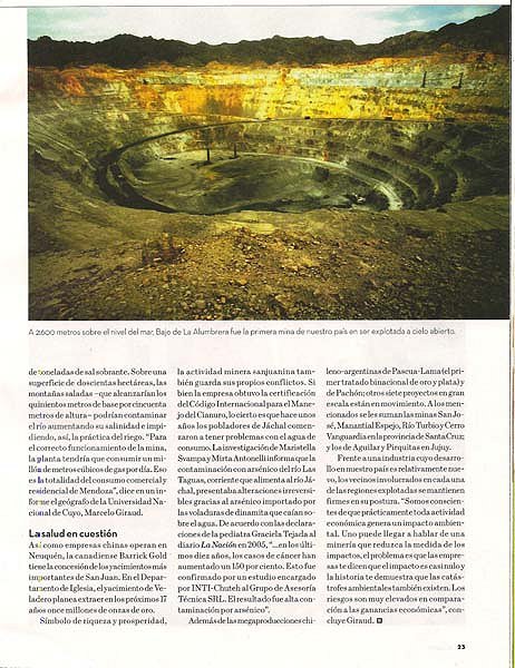 Un amigo chileno nos trajo de regalo desde Córdoba Argentina el Diario "La voz del Interior" de ayer domingo. Lo compró especialmente porque trae una revista que se llama Rumbos, en este número viene un articulo sobre la minería y pensó que sería de nuestro interés. Esta revista circula en muchos diarios argentinos simultaneamente.
