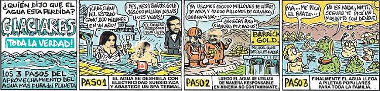 La empresa minera consideró como cuestiones "falsas y ofensivas" los dichos del popular personaje de la página de humor de Clarín. Hasta ahora, sólo Aníbal Fernández le había atribuido un sentido real a las "reflexiones" de La Nelly.