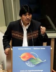 Al hacer una convocatoria a los líderes, gobiernos y pueblos del planeta, el primer presidente indígena de Bolivia, dijo que "el planeta, la madre tierra, no puede ser una mercancía".