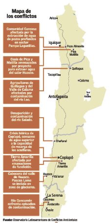 Según Juan Ramón Candia, director del programa de Medio Ambiente de la Fundación Chile, "las compañías mineras están sujetas a muchas presiones en el exterior y no les interesa para nada comprarse un problema social o con los agricultores. Una parte importante de la propiedad de las mineras está en manos de fondos de pensiones de países desarrollados y sus afiliados son muy sensibles; por ejemplo, a las denuncias de los medios de comunicación".