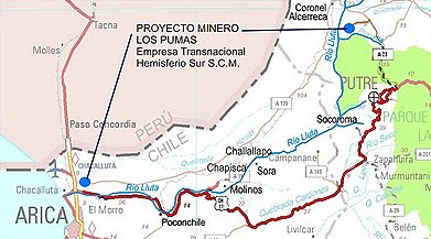 Que la empresa Hemisferio Sur S.C.M. no cuenta con una fuente de agua cierta para desarrollar su proyecto, por lo tanto ente internacional deberá realizar un nuevo proyecto. También el proyecto como se plantea no permite el aseguramiento de la calidad de las aguas subterráneas como superficiales, hay incertidumbre respecto al arrastre del material de los botaderos y que ciertamente llegara al Río Lluta, ya sea por pendiente o capilaridad, puesto que este se desarrolla en conexión directa con el río Lluta, la posible infiltración de aguas del botadero producto de la precipitación y su posible infiltración puede ocasionar un daño irreversible de contaminación a las aguas del río Lluta y napas subterráneas que abastecen nuestra ciudad.