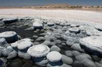 Cortez relata que el sitio era de una belleza extrema, ya que se habían formado estromatolitos o alfombras de piedras. Son rocas sedimentarias conformadas por células fosilizadas. Éstas crecen mediante capas superpuestas formadas muy lentamente por las cianobacterias.