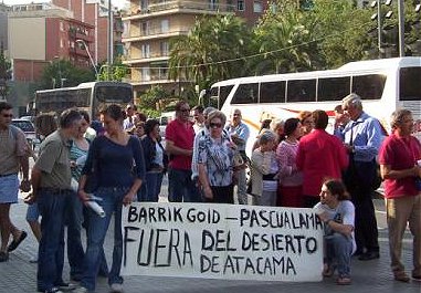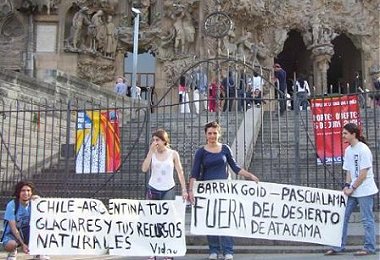 Se desarrollaron jornadas informativas en la Sagrada Familia de Gaudi desde las 6 de la tarde y posteriormente en la Plaza Cataluña terminando a las 9 de la noche, generando el encuentro entre una comunidad europea, que sabe apreciar el arte y disfruta de la diversidad cultural, se sorprende frente a una realidad lejana, pero solo en distancia, porque los efectos son globales. Las comunidades del Valle del Huasco en riesgo de perder sus formas de vida, su agricultura y su agua han convocado a una marcha en oposición al megaproyecto Pascua Lama de la Barrick Gold. Sus únicas fuentes de agua caen desde los glaciares ubicados a 4 mil metros de altura en la Cordillera de los Andes. Agua que baja en pequeños hilos formando riachuelos que son arrebatados del desierto por esa comunidad organizada, el agua en esas tierras vale más que el oro porque es su vida. El mundo científico de Barcelona, la ciudad de la luz cultural manifestó su profundo desacuerdo en contra de la viabilidad del Proyecto Pascua Lama. El Departamento de Ecología de la Universidad de Barcelona, en donde Limnólogos y Ecólogos con una amplia tradición en el manejo de sistemas acuáticos continentales ven con preocupación la intervención a los glaciares chilenos y nos emiten su pronunciamiento, declarando la inviabilidad de una intervención a los glaciares por su ubicación geográfica (en medio del desierto) y la agravante climática por calentamiento global que envuelve a la Biosfera en el presente siglo. Dicho pronunciamiento lo encabeza su director el Doctor Joan Armengol.