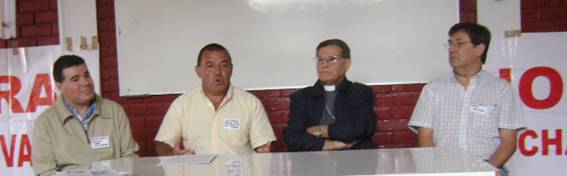 Jorge Godoy, Coordinadora por la Defensa del Agua del Valle de Copiapó - Luis Faura, Pastoral Salvaguarda de la Creación de Alto del Carmen Valle del Huasco - Gaspar Quintana, Obispo Diócesis de Copiapó - Lucio Cuenca, Observatorio. Latinoamericano de Conflictos Ambientales OLCA - DRYNET.