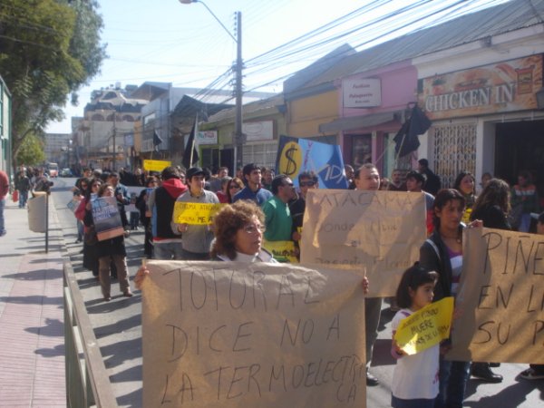Mientras los jueces de la Corte de Apelaciones analizaban la procedencia del recurso de protección presentado por el abogado Patricio Escobar, se desarrollo una gran movilización ciudadana en las calles de Copiapó. Las organizaciones sociales y ambientales convocantes de toda la region de Atacama, provenientes de Caldera, Vallenar, Huasco, tambien se le sumó una numerosa delegacion de Totoral, el poblado rural mas cercano al lugar donde pretende instalarse la Termoelctrica.