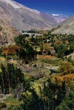 Junto a los otros 30 miembros del Comité de Defensa del Valle del Huasco, Bou no ha descansado desde que se enteró (2001) del magno proyecto de la empresa canadiense Barrick para explotar oro, plata y cobre en la cordillera de la III Región. Mientras las asistentes sociales contratadas por Minera Nevada S.A. (subsidiaria de Barrick en Chile) realizan hace meses un 'puerta a puerta' para hablar sobre la millonaria inversión y los miles de trabajos que creará, él y sus compañeros hacen lo propio para informar sobre la otra cara de Pascua Lama, una donde resaltan los perniciosos efectos que -aseguran- tendrá sobre la comunidad y el medio ambiente. Basta con recorrer el serpenteante camino que va desde Vallenar, la capital provincial, a los pueblos del interior, para darse cuenta del potencial agrícola de la zona. Los cerros desnudos y coloreados de minerales contrastan con la exuberante vegetación de los bajos. A pesar de su tímido caudal, el río Huasco alcanza para regar extensas plantaciones de uvas de exportación, paltas y olivos, además de cítricos y frutas tropicales, como guayabas y maracuyás. "Este es el único valle transversal sin intervención minera, además de tener una potencialidad única para el cultivo orgánico que se realiza desde el tiempo de los diaguitas. El futuro de esto está en jaque", dice con preocupación Nataniel Vivanco, vecino de El Tránsito. Esa misma percepción se refleja en la gran cantidad de graffitis de protesta: 'Seremos menos dignos como personas cada vez que desaparezca un bosque, un valle, un glaciar', 'Barrick go home' y 'No a Pascua Lama' se repiten por doquier. Pero el más llamativo es sin duda un mural pintado sobre la torre de la iglesia de Alto del Carmen, donde aparece la Virgen protegiendo a los huasquinos de los supuestos males que traería Barrick. Entre ellos, un río lleno de calaveras en vez de camarones y un cementerio en lugar de una viña. "La gente tiene que informarse", cree el padre Enrique Sarneguet quien, junto a otros religiosos, han sido fuertes opositores a la minera.