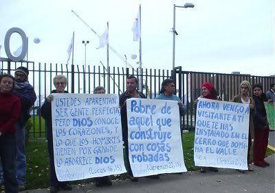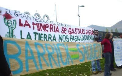 Una protesta contra el proyecto minero Pascua lama se efectuó en las instalaciones de la feria minera Expomin, en Santiago de Chile, este martes 23 de mayo.