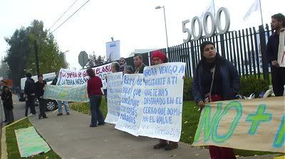 En la ocasión se reunieron en las afueras de la Expomin, manifestantes que gritaban “NO A PASCUA LAMA”, portando pancartas alusivas a la defensa del valle del Huasco y del agua.