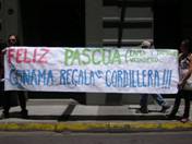 “Por demostrar tanto manejo de la naturaleza que no solo mueve glaciares, sino que los hace desaparecer, CONAMA regala a Barrick Gold las únicas reservas de Loros Tricahues del norte de Chile y el lugar donde habitan las chinchillas, ambas especies en peligro de extinción”, señaló el viejo pascuero junto a unas 20 personas que mediante lienzos y megáfonos expresaron su malestar frente a esta nueva decisión de la institucionalidad ambiental chilena.