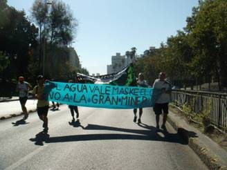Con el sudor bajo el sol, los integrantes de la Coordinadora Contra Pascua Lama – Stgo, junto a miembros de la Red de Acción por la Justicia Ambiental y Social (RAJAS), se reunieron para correr por la vida, por el agua y, una vez más, decir no a Pascua Lama y a la minería transnacional.