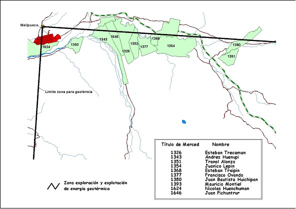 Las comunidades de Melipeuco, y los habitantes de los sectores afectados, estamos ya aburridos de que se siga especulando con nuestro territorio. Dentro del àrea licitada hay 15 Comunidades Mapuche, solo en el sector de Melipeuco. La ley de geotermia deja en total desprotección a los habitantes, dandole facultades a las empresas para expropiar, hacer caminos, tendidos electricos, o lo que necesiten para la producción industrial de energía.