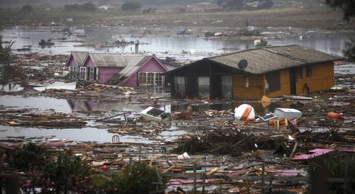 Santiago, 01 de Marzo de 2010. (Ecoceanos News)-- Decenas de comunidades costeras, puertos pesqueros y grandes ciudades devastadas dejó el terremoto grado 8,8 en la escala de Richter y posterior Tsunami que azotó la zona centro sur de Chile la madrugada del sábado 27 de febrero. La franja costera impactada es de unos 600 kilómetros y las marejadas avanzaron varios cientos de metros al interior de las zonas urbanas y rurales. También la Isla Juan Fernández (Robinson Crusoe) en el Pacífico Sur fue golpeada por el maremoto que destruyó el pueblo. A pesar de la magnitud de sismo y de la fuerza del gigantesco oleaje, la cantidad de muertos fueron pocos frente a tan devastador episodio. Esto fue debido a la experiencia y sentido común de la gente que inmediatamente ocurrido el movimiento telúrico arrancó a refugiarse a cerros y sectores más altos de sus territorios. Este domingo el gobierno reconoció que la Armada no había entregado información de un posible Tsunami y por tanto no hubo un llamado de alerta.