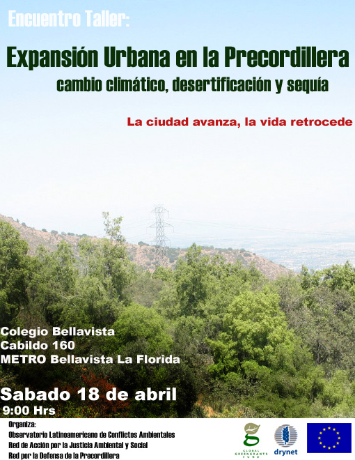 El Observatorio Latinoamericano de Conflictos Ambientales – OLCA- asociado a DRYNET, junto a la Red de Acción por la Justicia Ambiental y Social – RAJAS- y la Red por la Defensa de la Precordillera, invitan a participar del Encuentro-taller Expansión Urbana y su implicancia en el cambio climático, la desertificación y la sequía, a realizarse el sábado 18 de abril próximo.