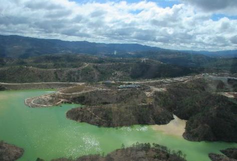 Laguna artificial creada por la mina Marlin, ubicada en San Miguel Ixtahuacán, San Marcos, para depositar las aguas utilizadas en la extracción de oro y plata. (Archivo Prensa Libre)