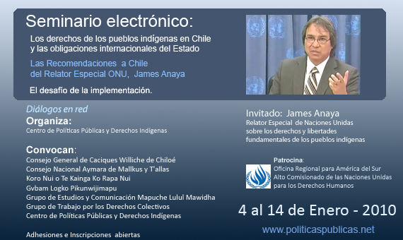 Se invita a presentar contribuciones, ponencias, ideas y propuestas para la implementación de las recomendaciones del Relator Especial James Anaya , y su incorporación en la agenda de las políticas públicas de Chile 2010-2014.