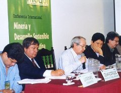 En la conferencia intervinieron representantes de comunidades afectadas por la minería, de organizaciones de base, de la sociedad civil, de las empresas mineras, del gobierno peruano y especialistas en temas mineros y ambientales. Entre los panelistas se encontraban César Rodríguez, del Ministerio de Energía y Minas de Perú; el economista Humberto Campodónico; Luis Romano, de Honduras; José Echave, Juan Aste y Ana Leyva, de la Red Muqui; Marco Tulio Araya, de Costa Rica; Felipe Cantuarias, de la Compañía Minera Antamina; Orlando Plaza, Antonio Brack, Carlos Soria y Laureano del Castillo, de Perú; Robert Moran, de Estados Unidos; Claudia Cárcamo y Carlos Patiño, de Honduras; Víctor Alanes, de Pastoral de la Tierra de Bolivia; Roberto Malvezzi, de Pastoral de la Tierra de Brasil; Ricardo Valverde, del Tribunal Latinoamericano del Agua; Carlos Santa Cruz, de la Compañía Minera Yanacocha; Felipe Ortiz, de Nicaragua y Carlos Patiño, de la Pastoral Social, de Honduras. Como expositores por parte de OLCA participaron Cesar Padilla y Ricardo Cifuentes. El encuentro, que fue inaugurado por el arzobispo de Huancayo, Monseñor Pedro Barrueto, contó con el auspicio de la Alianza Latinoamericana Frente a las Industrias Extractivas - AJPU y Caritas de Alemania. La Red Muqui está integrada por: Centro Pastoral de Diócesis de Chulucanas, Pastoral Social del Vicariato San Francisco Javier - Jaén, Diaconia para la Justicia y la Paz del Arzobispado de Piura y Tumbes, Comisión Episcopal de Acción Social- Ceas, Pastoral de Dignidad Humana - Pasdih de la Arquidiócesis de Huancayo, Coordinadora Nacional de Derechos Humanos, Fundación Ecuménica para el desarrollo y la Paz -Fedepaz, Grupo de Formación e Intervención para el Desarrollo Sostenible - Grufides Cajamarca, Asociación Civil Labor, Grupo para la Promoción del Desarrollo de los Andes, CooperAccion, Acción Solidaria para el Desarrollo, Asociación Evangélica Paz y Esperanza, Marianistas de Otuzco, La Libertad, Comisión Prelatural de Acción Social de la Prelatura de Huamachuco. En el evento se presentaron ejemplos de la destrucción a gran escala causada por la minería en diferentes países de la región. Los panelistas mostraron los impactos provocados en el entorno por la operaciones mineras, afectando a las comunidades cercanas, especialmente por el agotamiento y contaminación del agua y el deterioro del suelo. Un aspecto generalizado en todos los casos descritos para países diferentes, fue que después de varios años de operación minera la situación económica y social de las comunidades cercanas a las minas había empeorado. A pesar de las promesas iniciales de desarrollo y prosperidad, para todas las comunidades afectadas por la minería había aumentado de manera notoria la pobreza, la desocupación, el analfabetismo y los problemas de salud, entre otros. Se mencionó el caso peruano de Cajamarca que, en 1993, antes de la reciente llegada de grandes proyectos mineros era el cuarto departamento más pobre del país y que diez años después ocupaba el segundo lugar en pobreza. En la presentación inicial sobre tendencias de la minería, Cifuentes destacó el modo de operar a nivel global de las grandes empresas transnacionales mineras, que aprovechan al máximo las condiciones impuestas a los países menos desarrollados por el Banco Mundial, el Fondo Monetario Internacional y los países industrializados, que buscan facilitar a cualquier costo las inversiones. Señaló que la situación de la minería latinoamericana se corresponde en los últimos quince años con una globalización financiera y corporativa, que ha asumido una posición central en todos los negocios internacionales definiendo el rumbo de la acumulación, fuerte en el centro, débil en las periferias. La débil acumulación periférica apoya el desarrollo de un estilo colonial en la explotación de sus recursos. Caracterizó esto por la entrega completa del territorio, exenciones tributarias , facilidades en las concesiones mineras, servicios baratos generalmente provistos por fondos públicos, desprotección de la fuerza de trabajo y del ambiente. Indicó que la minería está así dominada por el capital transnacional y el crecimiento de la producción de estas corporaciones distorciona las cifras del producto bruto de cada uno de nuestros países al incluirla como producto de la nación. Dijo que el nivel que ha alcanzado esta instalación productiva se hace posible mediante la corrupción política que actúa como facilitador de concesiones y encubridor de una inmensa contaminación ambiental. Agregó que este proceso se está dando de modo similar en difrerentes países latinoamericanos, generando en algunos casos verdaderos modelos de operación al servicio de las transnacionales mineras, como en Chile donde a estas empresas se les permite no pagar impuestos con triquiñuetas tales como declarar pérdidas o cargar sus ingresos como gastos cobrados por sus propias subsidiarias. En su presentación relacionada con los impactos de la minería, el especialista Robert Moran, que tiene una vasta experiencia como consultor en asuntos mineros, afirmó que hasta ahora nunca ha visto una mina en el mundo que sea sostenible ambientalmente. Añadió que los estándares del Banco Mundial para medir los efectos de la minería en el medioambiente son más débiles que los de países como Canadá y Estados Unidos. Manifestó que le sorprendía que los economistas del Banco Mundial no sepan como evaluar los impactos ambientales de los proyectos mineros. Moran sostuvo que siempre hay impactos negativos provocados entre otras situaciones en la competencia por el agua, la contaminación del agua y los incrementos de los precios en las economías locales. Explicó que los métodos extractivos empleados actualmente necesitan grandes cantidades de agua y que el cianuro utilizado en el proceso no se descompone del todo. Añadió que los gobiernos no auditan todo e