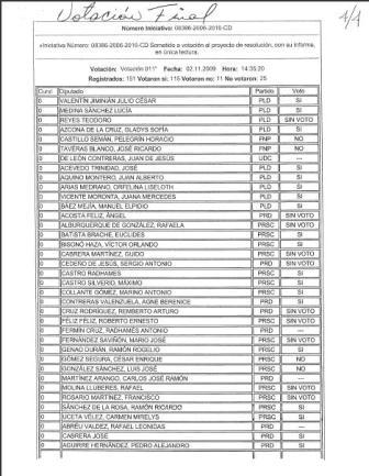 A continuación reproducimos íntegra la lista de diputados que asistieron a la sesión donde se modificó el contrato a favor de la empresa minera y la forma en que votaron.