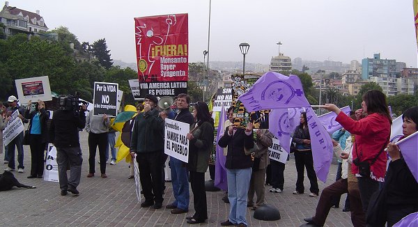 Con mensajes traídos desde diversos países de América Latina, representantes de organizaciones ambientales y sociales efectuaron una jornada de protesta frente al hotel donde se inauguró el VI encuentro REDBIO 2007, el 22 de octubre en Viña del Mar. Este evento reunió a científicos de universidades nacionales y extranjeras con las llamadas "transnacionales del hambre", tales como Monsanto, Syngenta y Bayer, que basan su negocio en el control de la cadena alimenticia mediante la producción de plaguicidas, transgénicos y agrocombustibles.